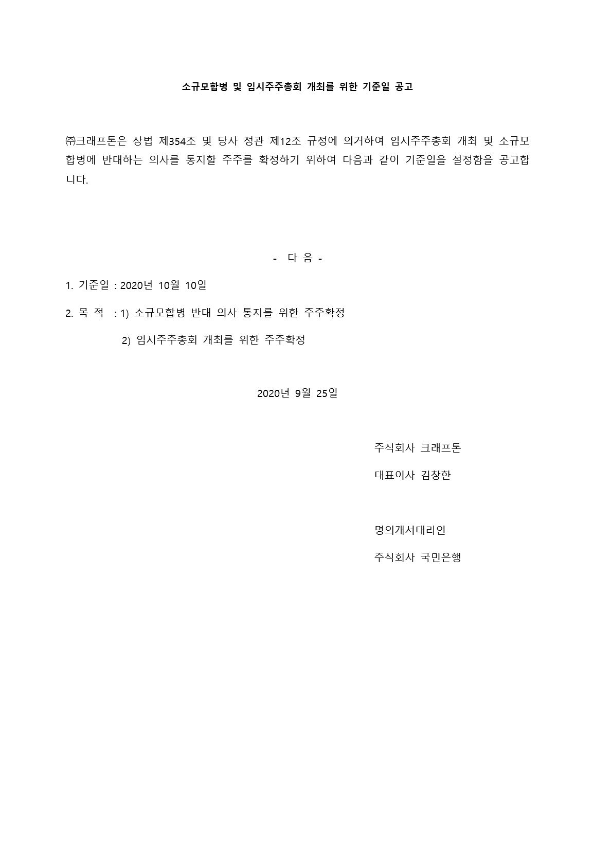 소규모합병 및 임시주주총회 개최를 위한 기준일 공고